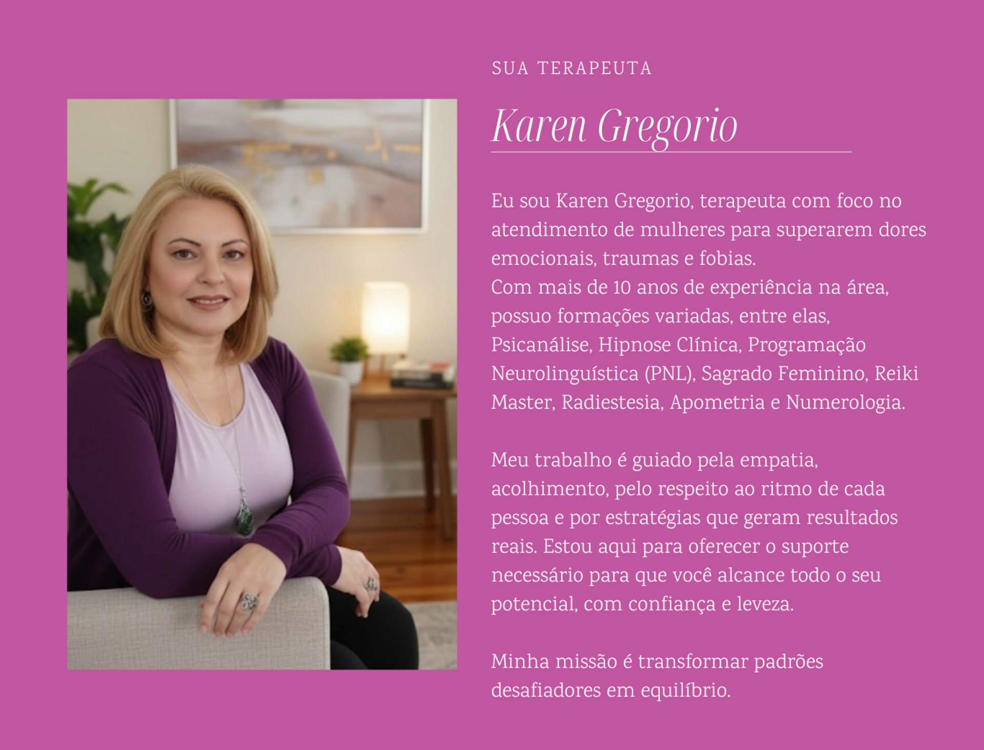 Sessão de análise, online, com foco no atendimento de mulheres que buscam autoconhecimento, equilíbrio e acolhimento para as suas questões emocionais.