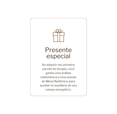 A análise radiestésica e a sessão de mesa radiônica estão inclusas apenas na aquisição do primeiro pacote de sessões de terapia.