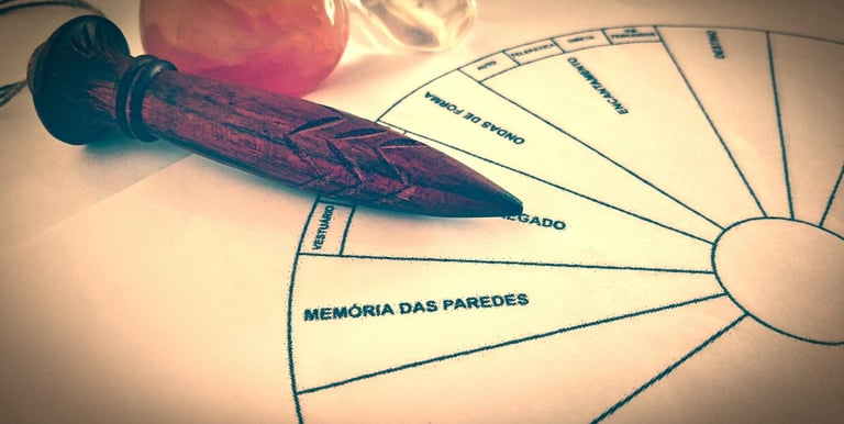 Análise do campo energético através da Radiestesia, com a identificação e medição de influências atuantes nos campos físico, emocional e espiritual.